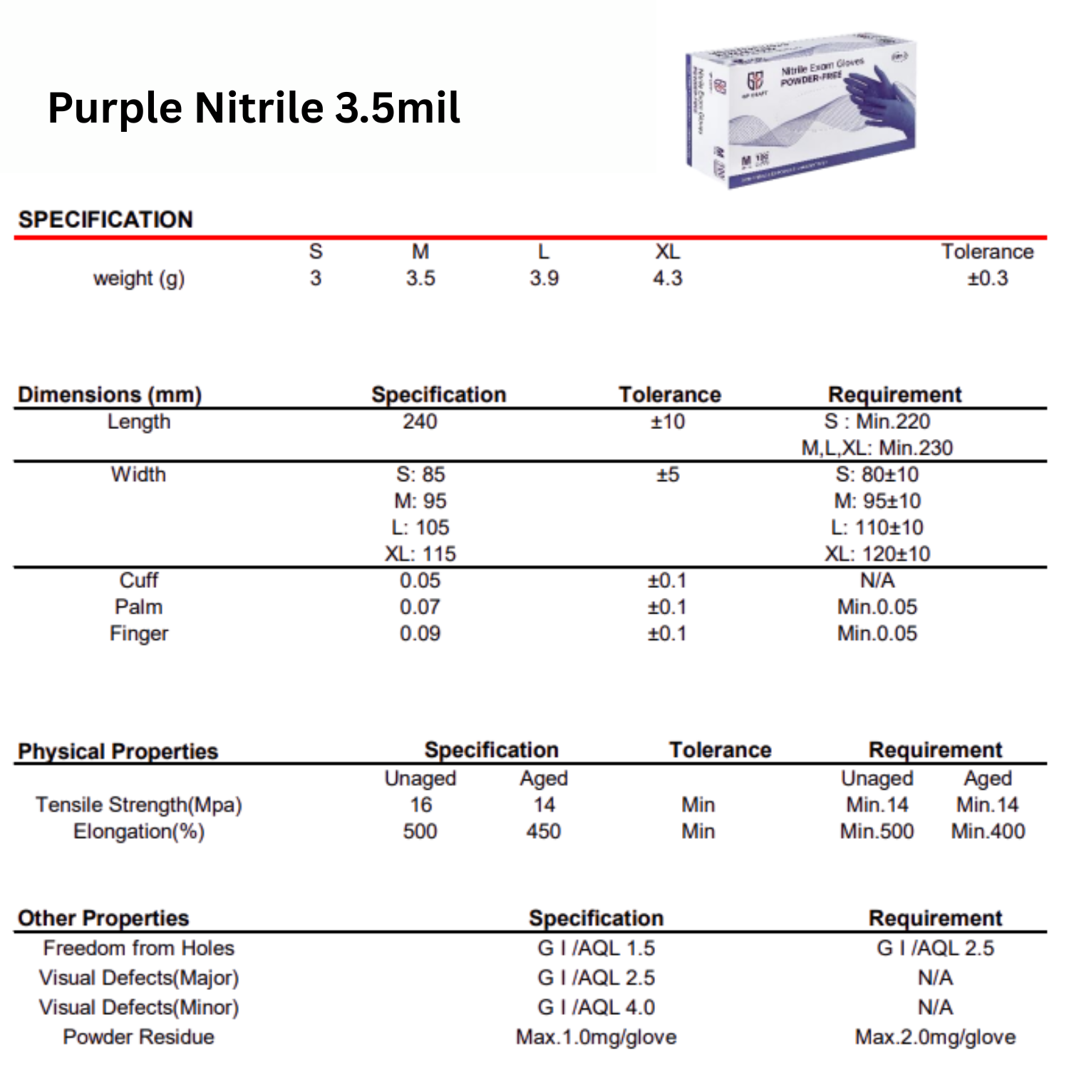 3.5 Mil Purple Nitrile Gloves, Disposable Powder Free (Case of 1000 pcs)